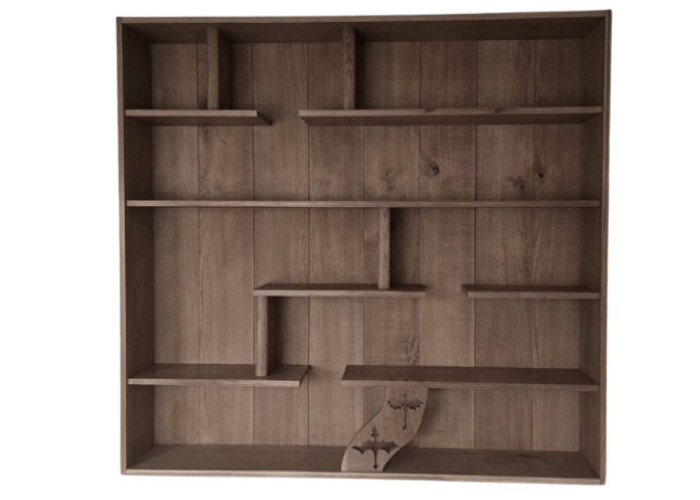 These are free standing bookcases with the option to choose your own custom details (bookend carvings, woodstain colour) and sized to your requirements. For a standalone bookcase, we would schedule a facetime appointment to discuss size and optional customisations, we would then email you a fixed quote, if you are happy to go ahead we would email you the invoice, with a 25% deposit payable immediately and the remainder payable upon delivery. Our estimated build time is one month from the date of the deposit being received, and during this periodwe will check-in with you over facetime to show you your build in progress and arrange a date with yourselves to deliver your new bookcase. Upon delivery we will fix your bookcase to the desired wall so you know it’s safe.This service is included in our quote.